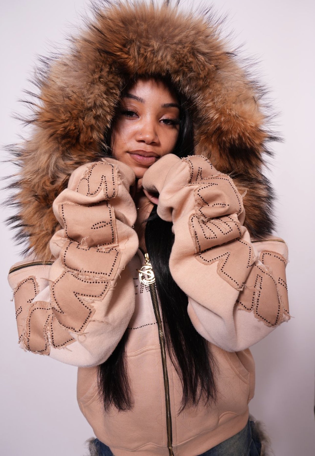 A shape-shifting testament to rebirth—this piece merges Detroit’s mink opulence with spiritual metamorphosis. Kink silk lining cradles the form, while detachable fur and sleeves offer a modular silhouette, embodying the tension between grit and divinity.